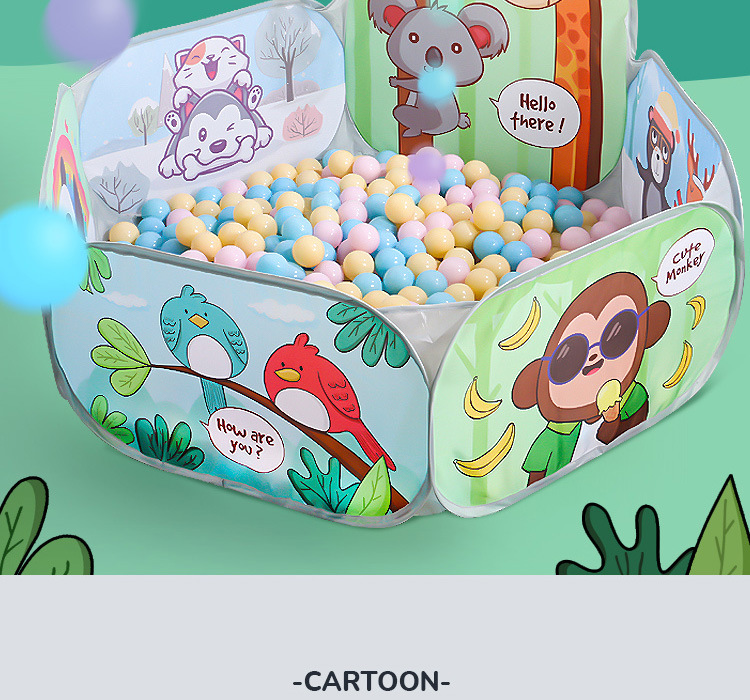 5分鐘前兒童海洋球池圍欄帳篷玩具池 - 1.2米六布卡通+100球+收納袋